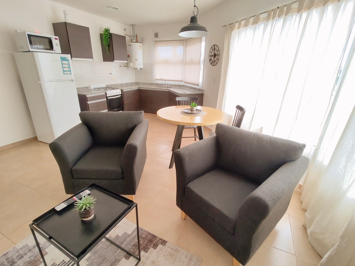 Acogedor departamento a pasos del mar y del centro Ideal para hasta 3 personas, este hermoso y luminoso departamento en primer piso está ubicado en una zona tranquila y segura de. Tenés todo cerca: playa, comercios, y hasta un kiosco 24 hs en la esquina. Cuenta con cocina equipada para que puedas cocinar como en casa, WiFi, agua caliente, calefacción y todos los detalles pensados para que disfrutes tu estadía. Si necesitás algo extra, ¡estamos disponibles para ayudarte!