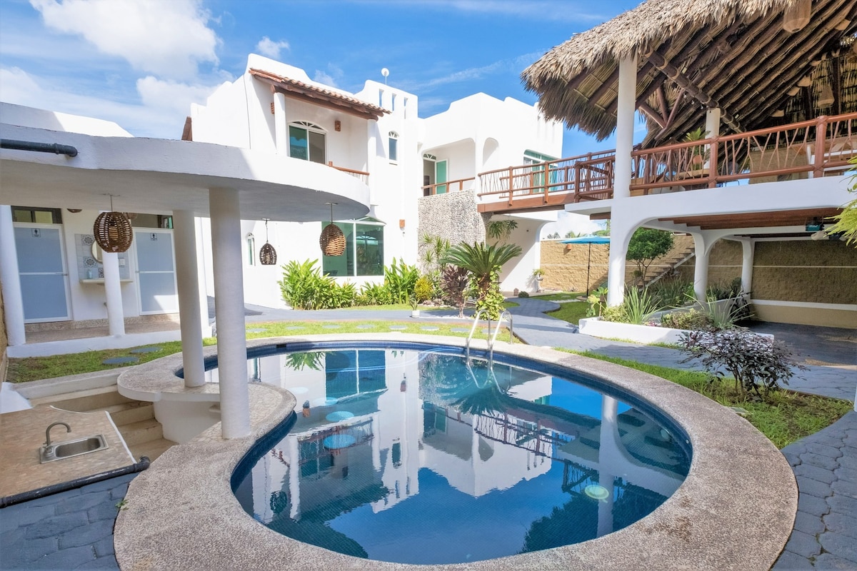 Dům na pláži na pobřeží michoacana (playa las peñas) Užij si tento dům pro svou rodinnou dovolenou It has 6 rooms (each with its full bathroom and air conditioning) with a capacity of up to 20 people Užij si bazén Chukum a rychlý přístup a procházku na pláž Na pláži najdete restaurace a průvody, kde si můžete dát snídani, oběd a večeři Jeden blok od domu je samoobsluha Chochera až pro 4 auta