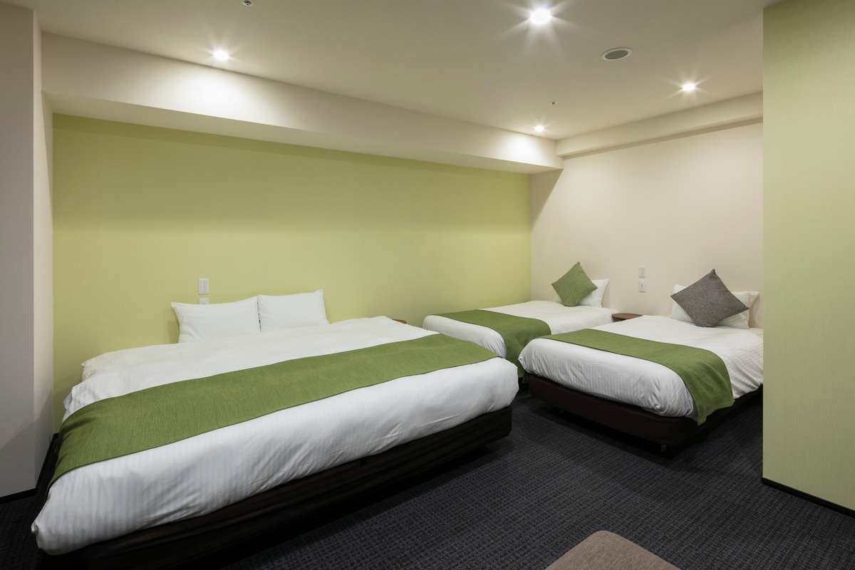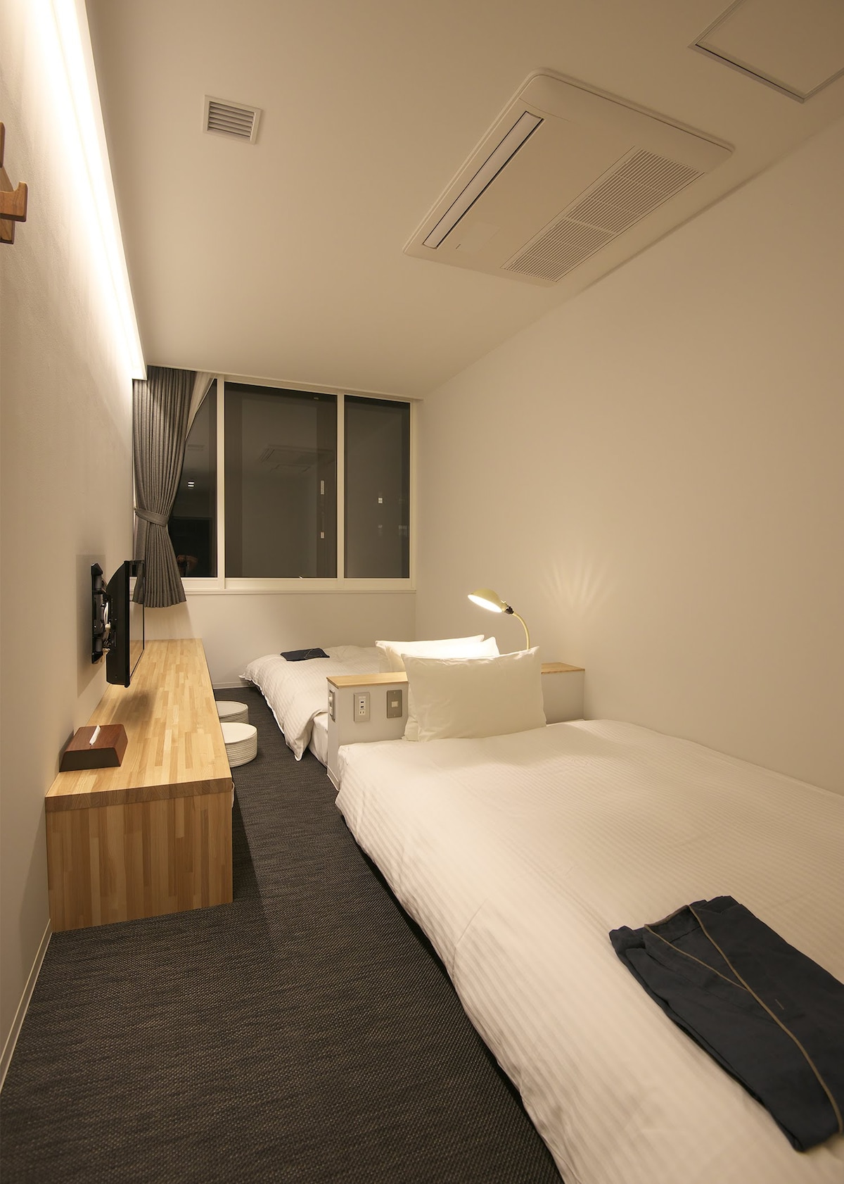 Simple and calm guest room. Enjoy a comfortable journey in a space equipped with shower booths and amenities. Free Wi-Fi is available throughout the building, and you can enjoy the internet in your room or at the cafe on the first floor. We have two semi-double beds with a bed size of 123 cm. <Equipment> 32-inch LCD TV, shower, wash basin, reading light, desk, chair, Fully equipped with air conditioning, refrigerator, hair dryer, electric kettle, etc.