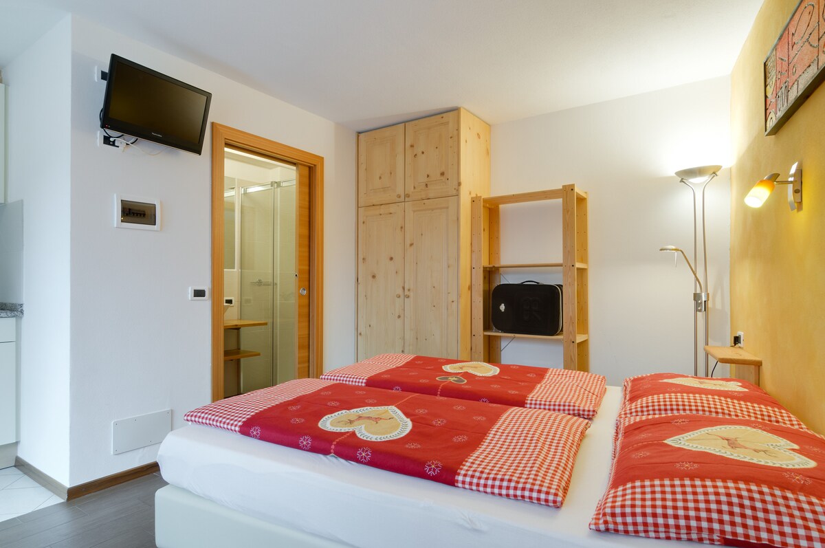 Útulný, co by kamenem dohodil od sjezdovek a ponořený do zeleně vesnice Pedraces/Badia. 400 metrů od lyžařských vleků, které jsou v provozu i v létě. Apartmán se skládá z ložnice s manželskou postelí, třílůžkové ložnice, vybavené kuchyně s elektrickým sporákem a troubou, obývacího pokoje, koupelny s vanou/sprchovým koutem, balkonu s výhledem na svahy.