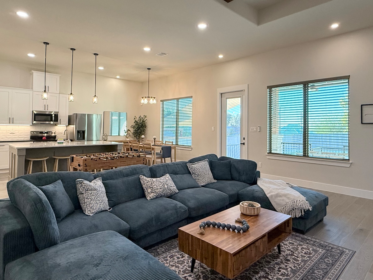 4 ložnice – vhodné pro rodiny – 10 hostů 👶Dětská postýlka, vysoká židle Užij si zábavu Stropní prostorový zvuk s🎼 Bluetooth 🎱Kulečník 🎲Stolní hry 🔥Ohniště 👉Hřiště 👉Venkovní gril 👉Plně vybavená kuchyně 👕Pračka a sušička 🚗10 minut👉 Randolph 🚗30 minut👉 Six Flags🎡 🚗45 minut👉 Seaworld 🚗30 minut do👉 centra San Antonia 🚗25 minut👉 New Braunfels/Schlitterbahn/Tubing 🚗30 minut👉🛫 SAX 5 ⭐„Všechno bylo super!“ Přidej si mou nabídku do seznamu přání kliknutím na ❤ v pravém horním rohu.
