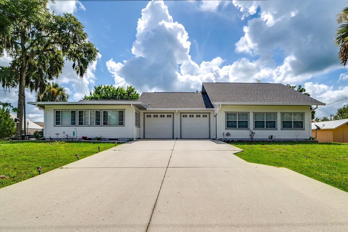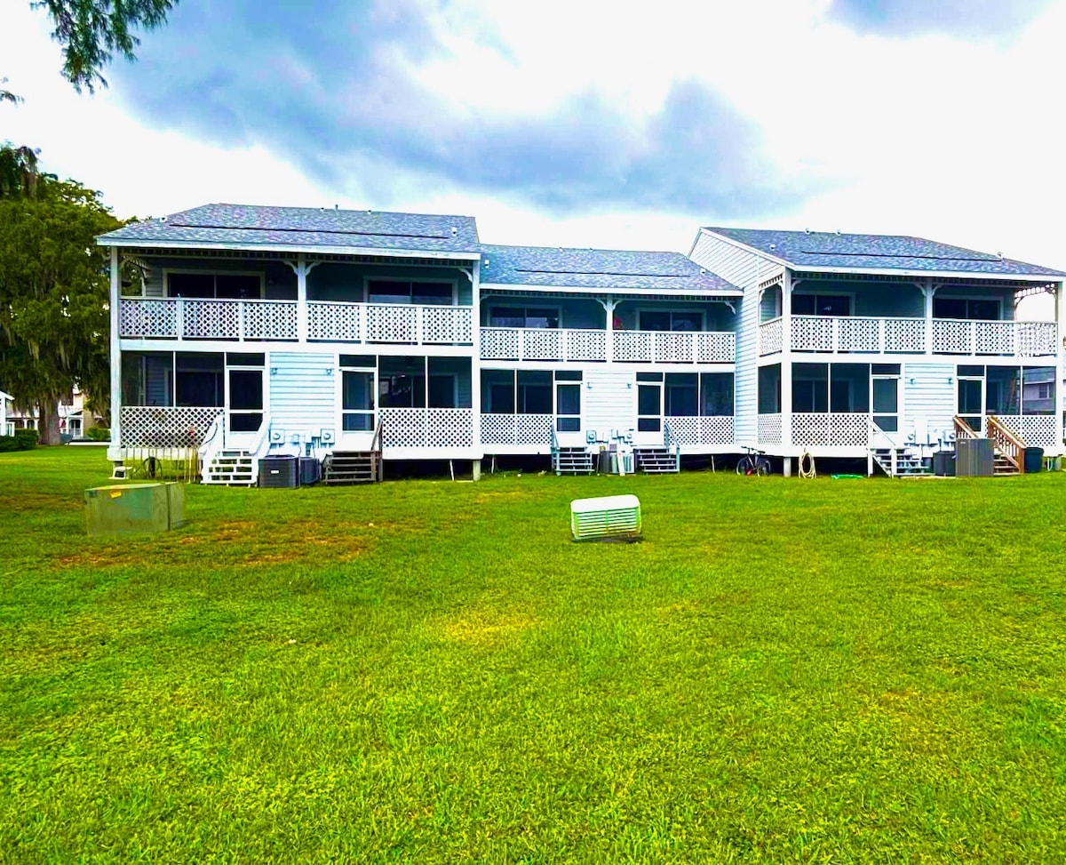 Vezmi rodinu🐕 na tento prostorný a zábavný výlet!Tento krásný kondominium na nábřeží nabízí úžasné výhledy*krytou verandu*komunitní bazén *pěkná místa pro rybaření*prostorný dvůr*blízko turistických/cyklistických stezek Kousek odtud je *jezdecký areál* rybník s kapry *duhové prameny* divoké vzducholodě Krátká jízda na pláž Fort Island. Naplánuj si jednodenní výlet do Orlanda, Tampy, St. Pete Beach nebo Clearwater. Ať už jsi tady, abys prozkoumal/a, odpočinul/a si u bazénu nebo si užil/a atrakce, tento byt má všechno
