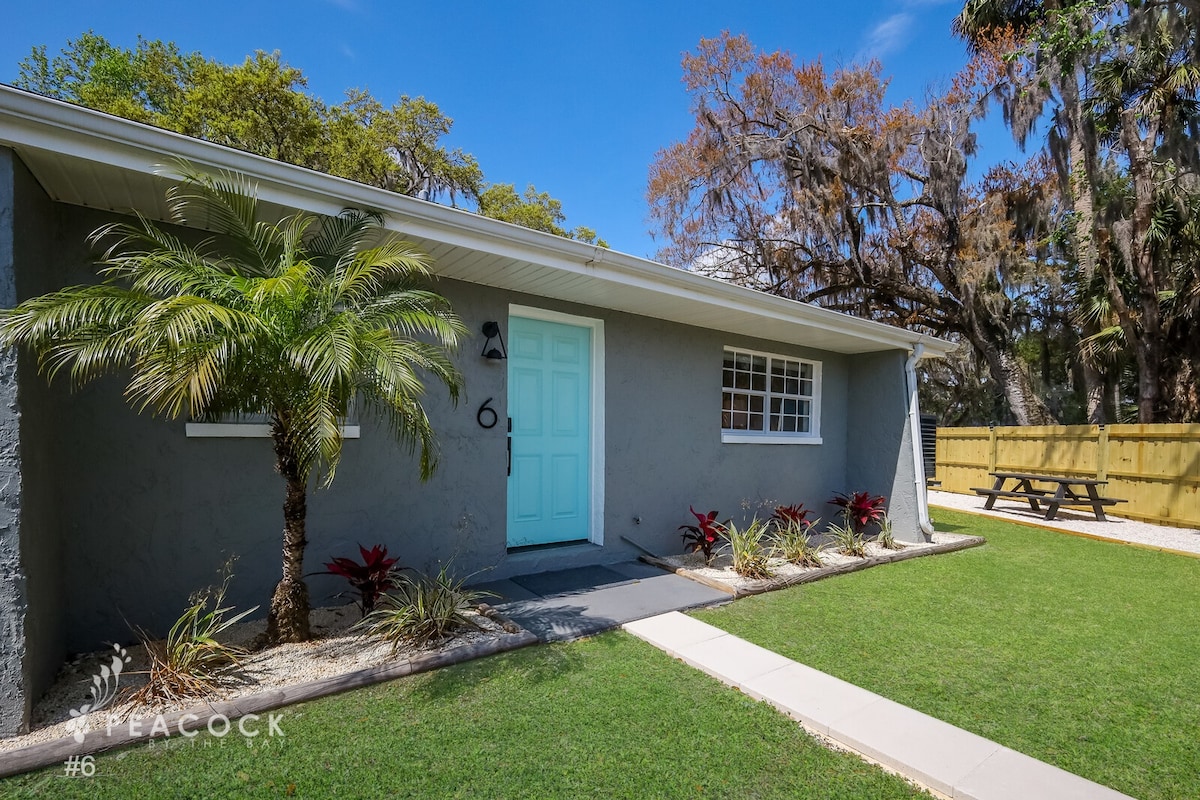 👉🏻Vítejte v našem „Micro Motelu“! Hostíme celou nemovitost. Každá vila č. (1–6) je rekreační pronájem v Peacock by the Bay! ✨ LOKALITA ✨ LOKALITA ✨ LOKALITA✨ ★Centrum Crystal River: Žádný vtip, jsme doslova přímo v centru Crystal River West of HWY 98 ★Naproti Kings Bay ★1 minuta do Hunter Springs a jeho bílé písečné pláže ★3 minuty do pramene Three Sisters Spring: SLAVNÉ stanoviště kapustňáků ★2023 Nově zrekonstruovaný stylový ráj ★6 vil Každá vila má 815 čtverečních stop s vlastní soukromou terasou