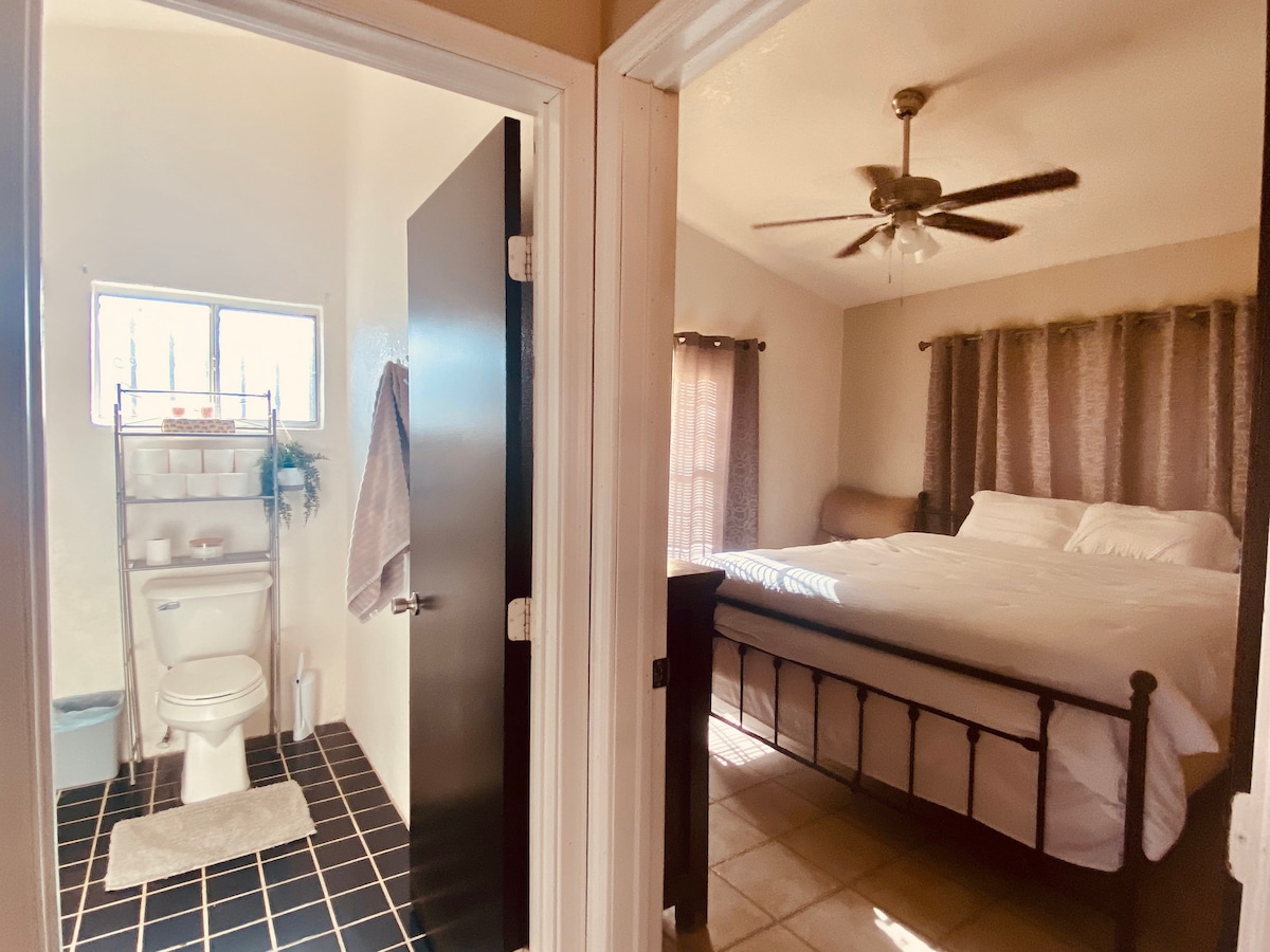 Tento penzion je ideální pro pohodlný pobyt nebo delší pobyt s chlazeným vzduchem. Zcela soukromý prostor, který je oddělen od našeho domova. Prostor má 775 čtverečních stop a je plný domácích detailů. Dokonale klidné v bezpečné a klidné čtvrti. Nachází se několik minut od I-10, US 54, Loop 375, Fort Bliss, mezinárodního letiště El Paso a centra El Paso. Upozorňujeme, že tento prostor byl kdysi velkou garáží a byl profesionálně přestavěn.