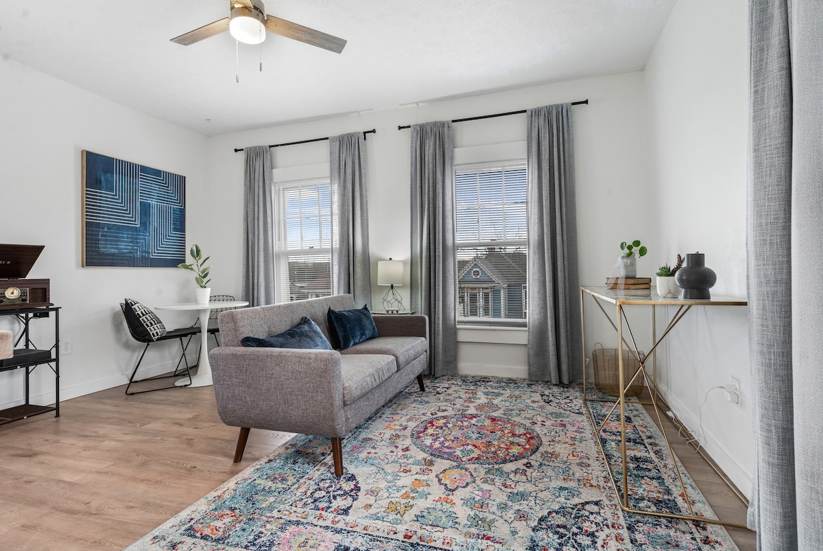 Užij si klidný a útulný pobyt jen pár kroků od řeky Ohio v Jeffersonville, jen kousek od centra Louisville. Tento stylový útulný apartmán nabízí plně vybavenou kuchyň, pohodlnou manželskou postel velikosti King z paměťové pěny a rozkládací pohovku velikosti Queen z paměťové pěny pro skutečně klidný spánek. Večer se můžete projít po mostě Big Four Bridge a kochat se úchvatným výhledem na panorama města nebo si odpočinout v příjemném filmovém večeru s několika možnostmi streamování.Dokonalá kombinace pohodlí, lokality a kouzla. Rezervuj si pobyt ještě dnes!