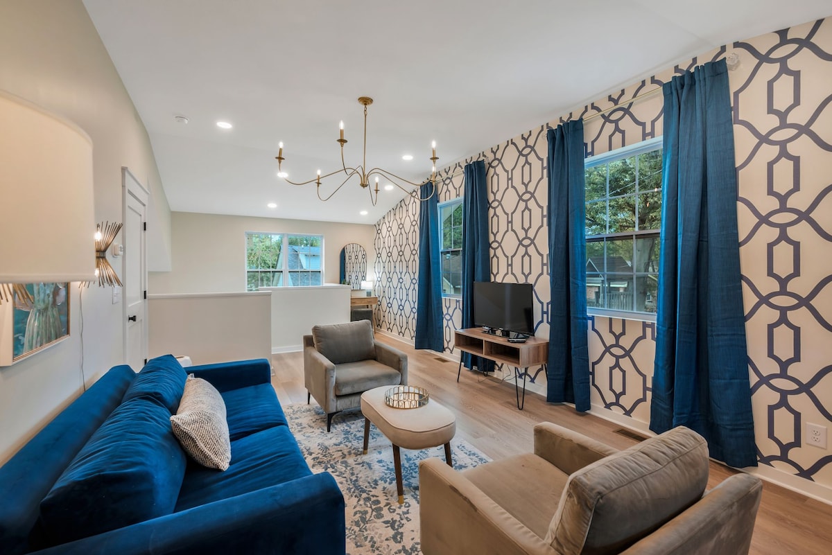 Zažij pohodlí tohoto útulného městského domu ve městě Nash se 4 ložnicemi a 4 koupelnami, který je promyšleně navržen pro relaxaci, zábavu a pohodlí. Ideální pro rodiny, skupiny, služební cesty, digitální nomády a podobně, nabízí plně vybavenou kuchyň, prostorné ložnice s chytrými televizemi, WiFi a útulný pracovní prostor. Odpočiň si na střeše s útulným krbem a dechberoucím výhledem na město. Jen pár minut od centra, Broadwaye, Germantownu a Music Row, naplň svůj pobyt pohodlím, kouzlem a místní atmosférou!