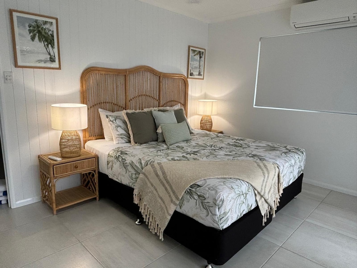 Během tohoto klidného pobytu si dokonale odpočineš; 5 minut pěšky od krásné pláže Clifton Beach a 10 minut od obchodů. Užijte si velký bazén se slanou vodou, relaxujte v houpací síti nebo si vychutnejte šálek čaje v zahradním altánu a sledujte ptáky a motýly. Útulný obývací prostor pro 2 nebo 3 osoby se super pohodlnou manželskou postelí a postelí pro hosty, rychlou WiFi, plně vybavenou kuchyní a prádelníkem se vším, co potřebujete pro pohodlný a příjemný domov – ideální pro dlouhodobé pobyty. Cairns a letiště jsou 25 minut jízdy a Port Douglas 40 minut.