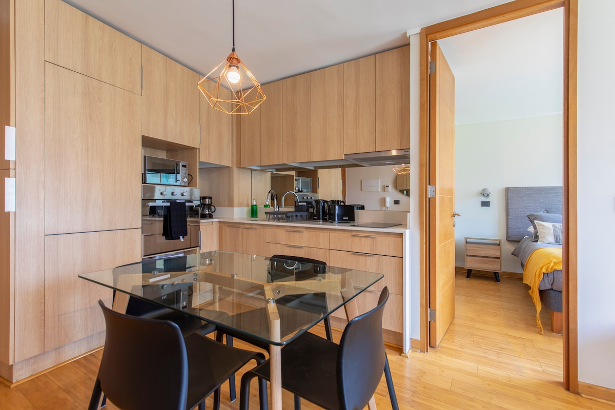 Užij si moderní byt se 2 ložnicemi a 2 koupelnami a okouzlující soukromou terasou plnou rostlin. Ideální pro snídani venku, relaxaci nebo drink při západu slunce. Nacházíš se v pěší vzdálenosti od obchodů a restaurací na exkluzivní třídě Avenida Isidora Goyenechea a v blízkosti centra Costanera. K dispozici je plně vybavená kuchyň, klimatizace, chytrá televize a nepřetržitá ostraha. Ideální pro krátké pobyty, páry nebo cestovatele, kteří hledají design, lokalitu a zelený koutek uprostřed města.