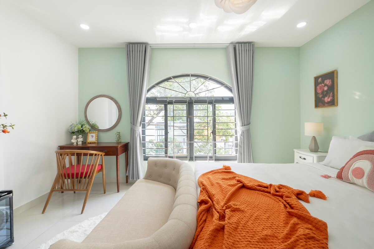 In an artistic and cozy house located right in the heart of Saigon, you are able to have a full experience in this city. It is surrounded by many street-famous and exotic foods and the iconic Vietnamese local markets. With a perfect kick-start coffee in the morning, you are set to discover Saigon's most famous landmarks in a 5 minute walk from the place. It's a 5-bedroom house with enough space to spare for you and your family and friends...