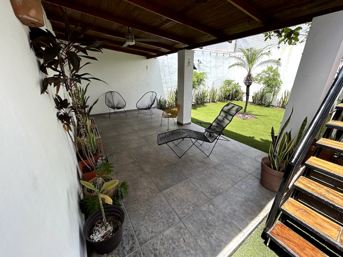 Cómoda, bonita e impecable casa moderna que goza de grandes espacios para disfrutar, descansar y relajarte. Excelente ubicación, se encuentra a muy corta distancia de tiendas, supermercados y restaurantes. La casa cuenta con: ~Recámara con A/C ~Ventanales panorámicos al área de piscina ~Cocina completa con utensilios básicos ~Comedor principal ~Comedor al aire libre en área de la piscina ~Sofás en área de TV. ~Piscina (Privada) ~Gimnasio ~2 Baños completos (planta alta y baja) *No Mascotas