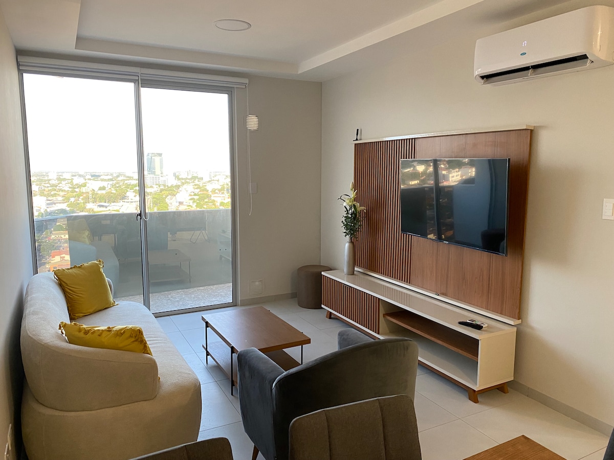 Jednopokojový apartmán, ideální pro váš příští pobyt v Santa Cruz de la Sierra! Nachází se v centru města, jen pár kroků od Equipetrolu, obchodního, obchodního a společenského centra města. Jednotka má útulný prostor, který nabízí veškeré nezbytné vybavení pro pohodlný a nezapomenutelný pobyt. Najdete zde servisní prostor, pračku a sušičku, žehličku, kávovar, nádobí, ložní prádlo, 2 55" smart TV s kabelem, Netflix a rozkládací pohovku. Rezervujte nyní!