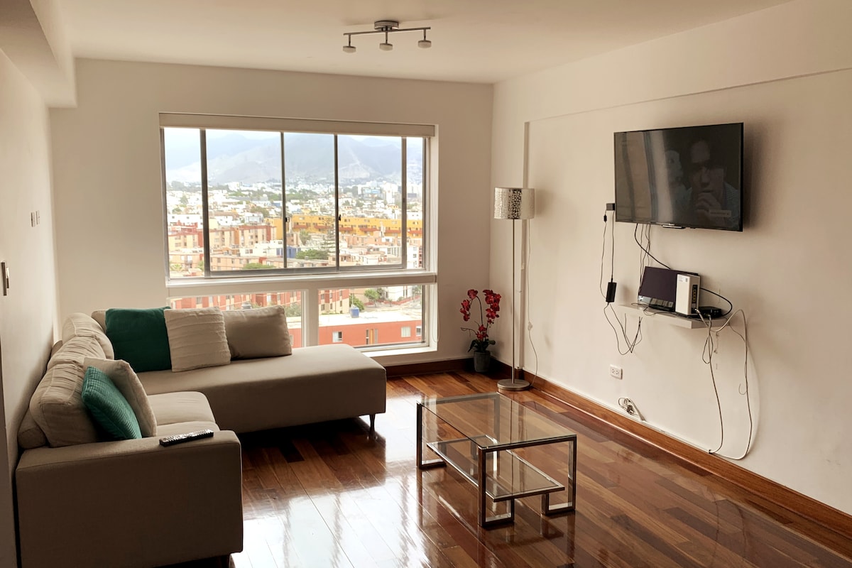 Objevte tento útulný apartmán s 1 ložnicí v jedné z nejbezpečnějších čtvrtí Limy, jen pár kroků od Miraflores. Ideální pro cestovatele, kteří hledají pohodlí a vynikající polohu. Má obývací pokoj, vybavenou kuchyň, vysokorychlostní WiFi a pěkný balkon ideální pro relaxaci. Užijte si blízkost restaurací, kaváren a parků se snadným přístupem do centra Miraflores nebo do jakékoli části centra města. Ideální pro krátké nebo dlouhé pobyty. Budete se cítit jako doma!