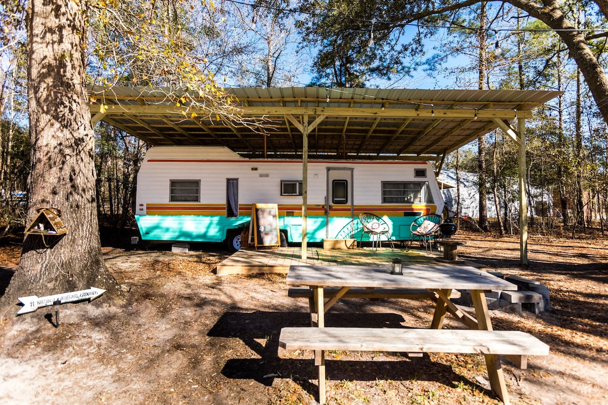 Uteč do klidného kouzla karavanu Tiny Home Camper v Anderson Orchard, útulného malého karavanu zasazeného mezi pekanové a hruškové stromy na naší rodinné zahradě. Toto jedinečné útočiště je ideální pro páry, sólo cestovatele nebo kohokoliv, kdo hledá klidný pobyt v Lowcountry jen pár minut od dálnice I-95 a Yemassee a kousek autem od Beaufortu, Charlestonu nebo Savannah.