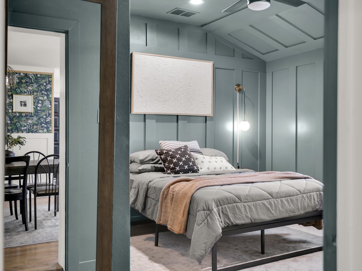Historické s moderním nádechem! Tato útulná moderní chata je jen pět minut chůze od historického náměstí McKinney, kde najdete nákupy, báječné restaurace, hospody, ochutnávky vín a další. Tato krásná chalupa byla postavena v roce 1953 a těší se bohaté historii starého McKinney. V roce 2020 byla kompletně zrekonstruována a má dvě ložnice, jednu koupelnu, plně vybavenou kuchyň a prádelnu. Tato chalupa, vyzdobená v industriálním stylu, spojuje přítomnost s minulostí. Nachází se v historické čtvrti McKinney, kde si odpočineš s veškerým moderním pohodlím domova. Po nákupu a stolování v centru se projděte zpět domů a prožijte čas s přáteli uvnitř nebo na zadní terase. Úžasná lokalita Naše chata je méně než míli od Cotton Mill, v blízkosti mnoha dalších svatebních míst, jednu míli od pivovaru Tupps a jen 12 minut jízdy od TPC Craig Ranch (nový domov golfového turnaje Byron Nelson). Atrakce v docházkové vzdálenosti zahrnují: všechny restaurace v centru McKinney, vinařství, hospody, bary, obchody a festivaly! Oblíbená místa v centru McKinney jsou The Yard (restaurace / bar s venkovními hrami, ohniště, také vhodné pro rodiny), Ricks Steakhouse (také má opravdu skvělý bar umístěný v zadní části restaurace s živou hudbou o víkendech), Harvest (zdravé farmářské čerstvé potraviny z místních zdrojů) a Landon Winery. Chalupa Naše chata pojme až pět osob s jednou manželskou postelí a jednou manželskou postelí s výsuvným kolečkem pod ní. K dispozici je vysokorychlostní Wi-Fi a tři televizory s Netflixem. Televizory můžete také připojit k osobnímu účtu Hulu, Prime Video, Ruko, HBO atd. Kuchyně je vybavena veškerým základním kuchyňským vybavením, talíři, misky, šálky, hrnky, nádobí, kuchyňské utěrky, kávovar, káva, smetana atd. Prádelna zahrnuje velkou pračku a sušičku. Na zahradě je krásná terasa.