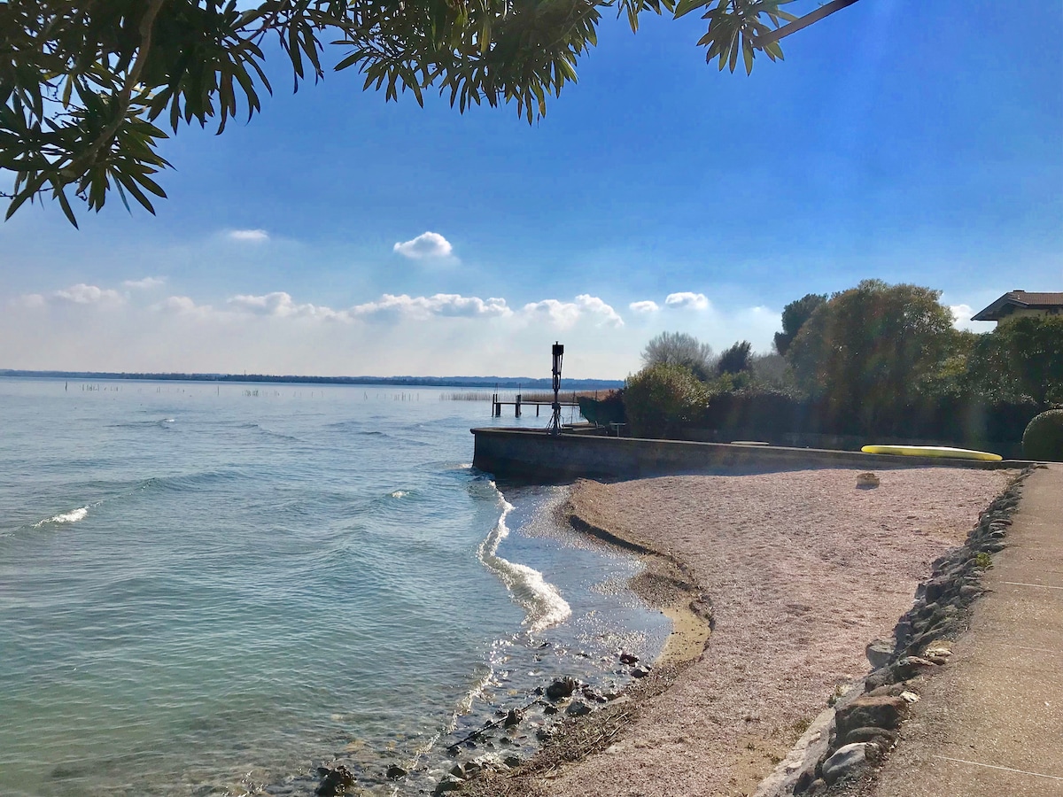 Kompletně zrekonstruovaný apartmán v jedinečné poloze: před hradem, uvnitř středověkých zdí s kouzelným výhledem na hrad a jezero. Pouhých 5 metrů daleko najdete malou, velmi romantickou pláž sousedící se zámkem. 50 metrů daleko najdete slavnou „Spiaggia del Prete“ a pokračujíc příjemnou procházkou se dostanete k nádherné „Jamaica Beach“ a Aquaria SPA. Během své dovolené budete bydlet ve středověkém Sirmione, které je plné restaurací, klubů a obchodů.