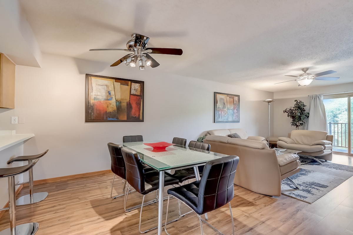 Jednopokojový byt na nábřeží v klidné oblasti centra Wisconsin Dells. Projděte se poblíž krásné River Walk a užijte si nádhernou scenérii a jedinečné atrakce centra Wisconsin Dells. Ať už potřebujete pár dní na odpočinek a relaxaci, nebo jste ve městě kvůli práci či zábavě, náš apartmán nabízí plně vybavenou kuchyň, postel velikosti king a rozkládací pohovku velikosti queen. K dispozici je krytý společný bazén, vířivka a sauna. K dispozici je také sezónní venkovní bazén.