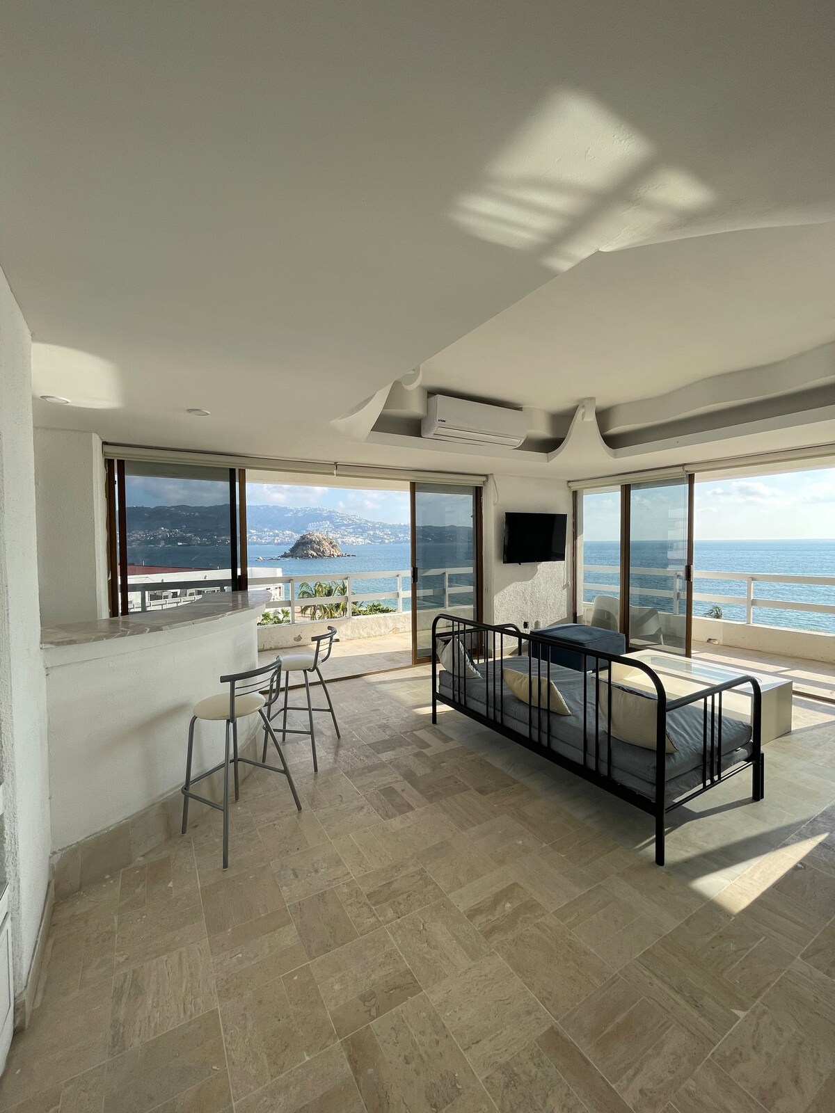 Jedinečný penthouse PET Friendly v Acapulcu s 360 stupňovým výhledem. Panoramatický bazén, který vám umožní užít si show skokanských můstků Quebrada. Obývací pokoj a jídelna jsou zcela otevřené ven a mají velkou terasu. Vybavená kuchyně a tři pohodlné ložnice, každá s vlastní koupelnou. Dekorace PH je ve středomořském stylu. Prostor je přirozeně větrán mořským vánkem, který navozuje pocit pohody.