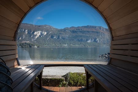 Vítejte v našem malém hnízdečku mezi jezerem a horami! 🌊🏔️🦜 Náš apartmán má panoramatický a úchvatný výhled na jezero Bourget a na Dent du Chat. Přímý přístup k vodě přímo u našeho domu. 🩱⛵️🐟🛶 Ideální místo k odpočinku a úniku od všedního dne v každém ročním období! ❄️🌺☀️🍁 Pomůžeme vám s organizací vašeho pobytu 🌻