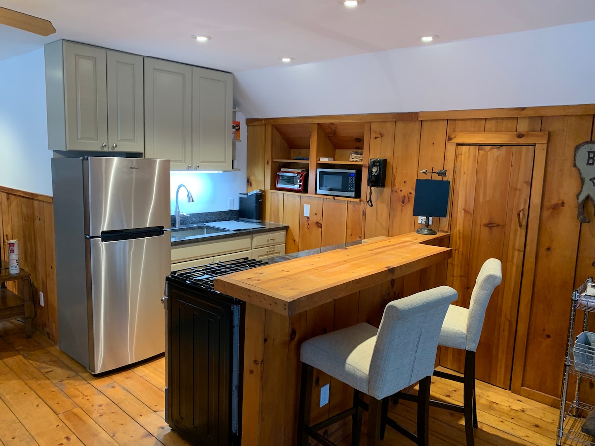 Uvolněte se v tomto útulném studiu, které se nachází v kopcích krásného Duxbury Vermont. Nabízíme ho po celý rok, aby si naši hosté mohli užít vše, co Vermont nabízí, jako je nedaleké lyžování, měnící se listí, turistika a mnoho dalšího! Hosté si užijí svůj vlastní soukromý prostor s přístupem k mnoha vybavením, jako je plně vybavená kuchyně, soukromý vchod, manželská postel, bezpečná WIFI a mnoho dalšího! Takže si vezměte hrnek, posaďte se a odpočiňte si u plynového krbu! Budete se chtít vrátit každou sezónu!