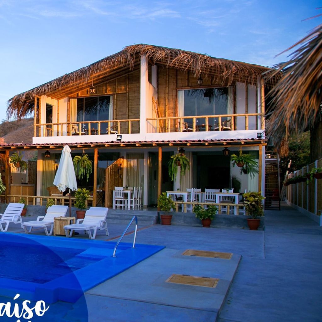 Linda premeno house with pool, unique design with architecture of the dry forest area, in front of the turquoise sea of Caleta Grau Zorritos Tumbes, super rich sea for bathing, warm temperature, wide white sand beach. Vytvoř si nezapomenutelné vzpomínky v tomto jedinečném rodinném domě 5 minut od Zorritos a 25 minut od letiště Tumbes a Ekvádoru