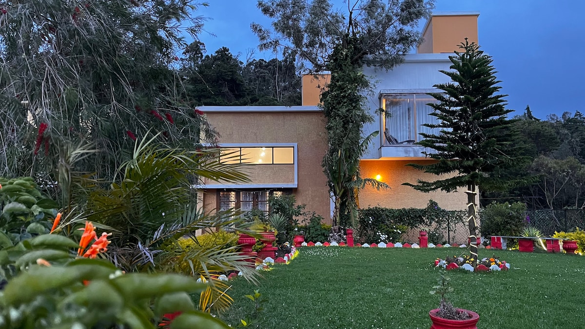 vila se 3 ložnicemi, pouhých 9 km od rušného centra Coonooru a půl hodiny jízdy do Ooty. S červenými dlaždicemi a širokými skleněnými okny má výhled na modré kopce, zelené údolí, čajové zahrady a (někdy) vodopád! Opatrně se houpej na terase a užij si výhled. Přijď pro klid a ticho! Tento kousek nebe nesmí rušit žádnou hlasitou hudbu ani hlučné chování! !