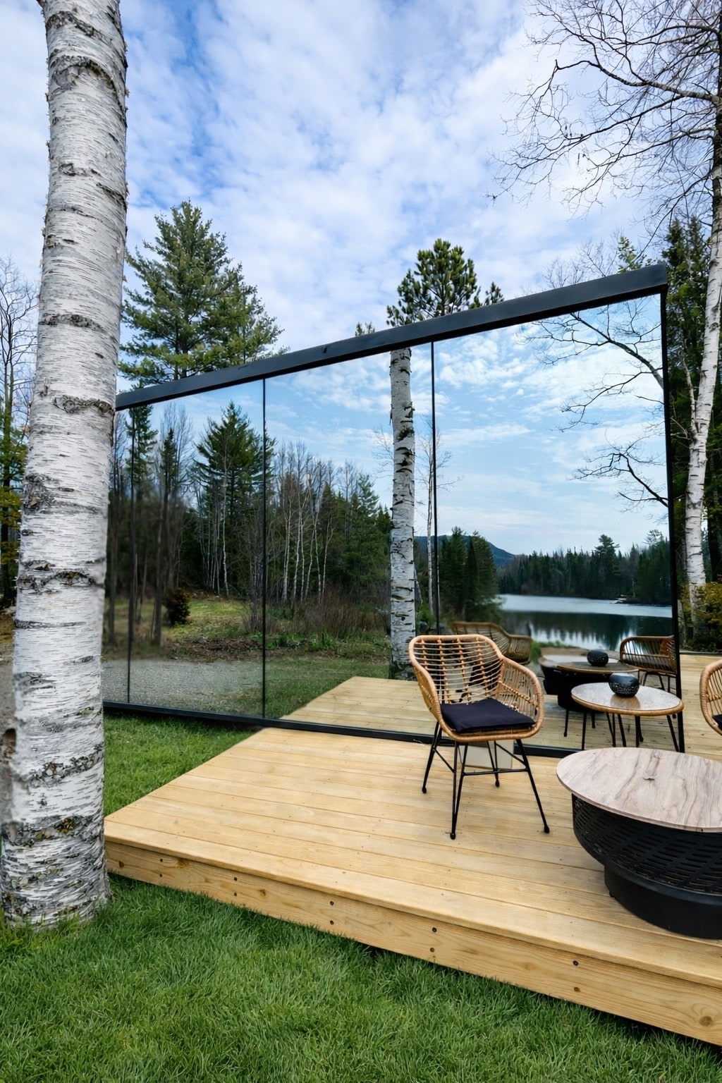 Spring Skiing! Sugar and Snow 20%discount! March is maple sugar and BIG snow season at Bretton Woods (only 20 min. away). Stay cosy in your Mirror House at FarAway Pond & enjoy winter wonderland views, private sauna and hot tub, fire pit-wood provided! Stay cosy inside the 3 glass walls with a complimentary wine and treats.& electric fire. With 68 acres + miles of trails to a nearby state forest, this is the perfect base for peak-season skiing and serene winter adventure. Dogs welcomed!