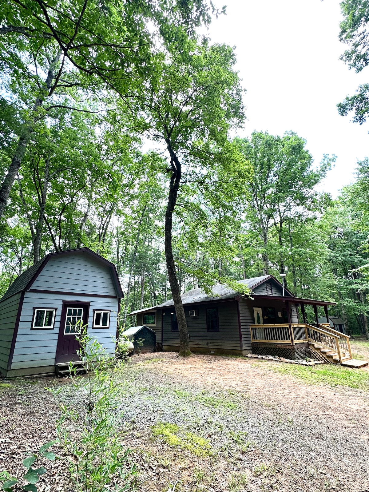 Bluff Haus je chata v Blue Ridge Mountains. Dvě paluby s výhledem na bujný les – to je sen každého návštěvníka Appalačských hor. Naše terasy jsou dovolenkovou destinací samy o sobě – od venkovního obývacího pokoje až po vířivku a zářící světelná řetězce. Uvnitř tě tento nový dům inspiruje a utěšuje na dvou podlažích s atmosférou statku, spoustou vybavení, bezplatným nabíjením elektromobilů a velkými okny s nekonečným výhledem na stromy.