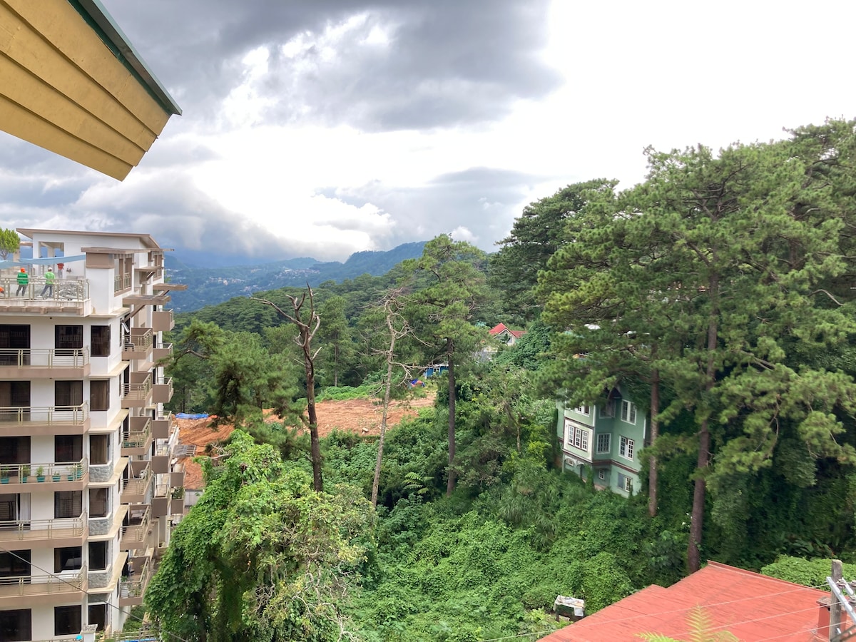 Forget your worries in this spacious and serene space apartment with panoramic city view from our balcony. Located at Middle Rock quarry and close to tourist spots. Burnham Park, Lourdes Grotto and Mirador Heritage and Eco Park is a few minutes away. Very accessible to public transportation. Just take a Jeepney or taxi infront of the house. We have a secured Parking. PLDT Fiber Wifi Connection for those work at home employees. 60"Smart TV, Furnished living room/kitchen/fresh linens/towels.