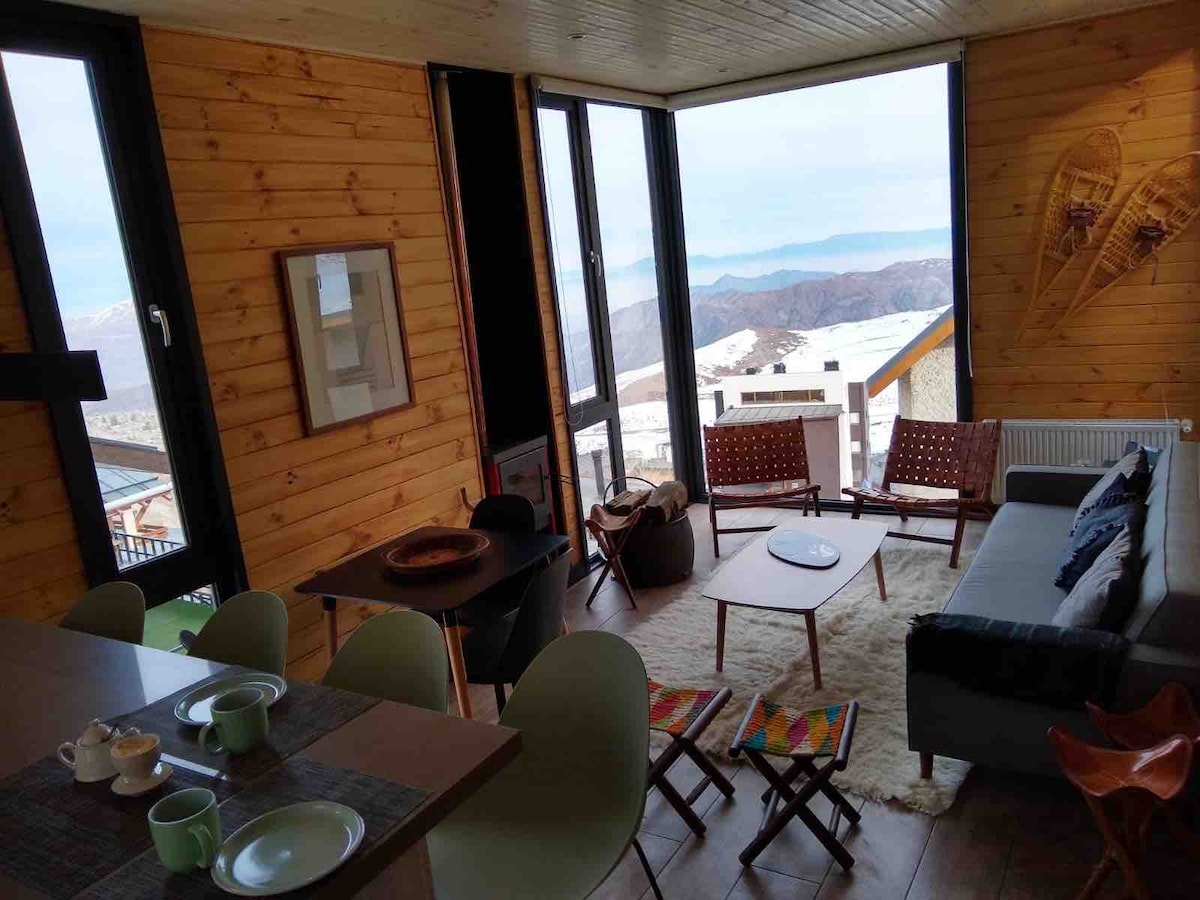 Na 20 metrů od andarivel Alpha. Kroky od lyžařské školy, půjčovny a restaurací. Adresa: Emile Allais 214, Floor 2. Exkluzivní soukromý Wifi Nádherný výhled na kurty. Velká terasa, severozápadní orientace. Prostorný obývací pokoj s jídelnou a vestavěnou kuchyní. Topení (kometa) a krb Televize Přímá televize. Mikrovlnná trouba, kuchyň s plynovou troubou. Nádobí pro 12 osob. Ložní prádlo a ručníky v ceně. Plynový gril (gril) Minibusová doprava Stgo LaParva Airport pouze pro mé hosty