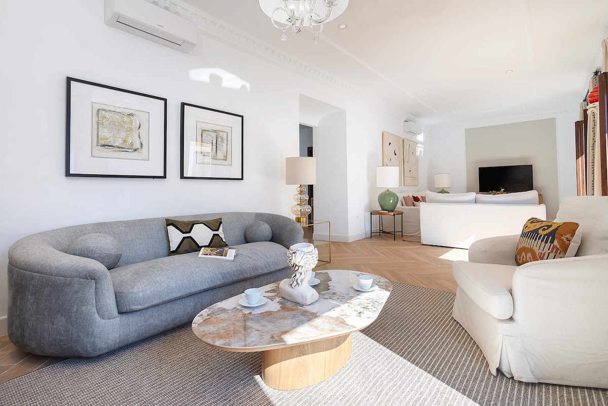 Byt je krásný a má 3 dvoulůžkové ložnice se 2 koupelnami, nachází se v těsné blízkosti paláce Viana a radnice, byl pečlivě navržen interiérovým designérem, byl konceptualizován moderním stylem a obdařen veškerým pohodlím a luxusem detailů. Je důležité si uvědomit, že 2 ze 3 ložnic jsou propojeny a pro přístup ke třetímu musíš projít druhou.