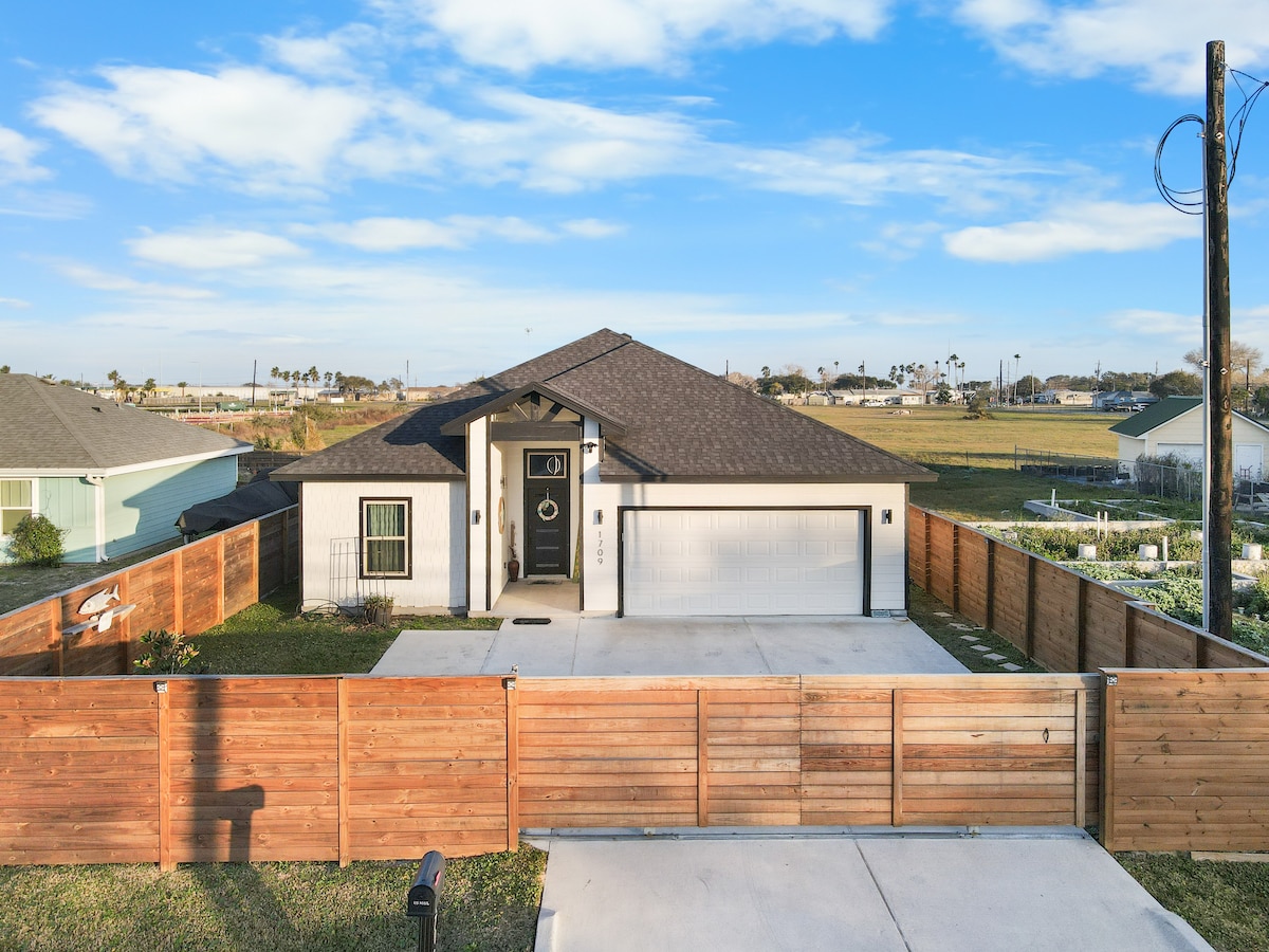 Very clean comfortable 3/2 private home on a waterfront canal by Laguna Madre Bay. Dodržujeme vylepšený úklid Airbnb v pěti krocích. Máme bezpečnostní kameru a domácí poplašný systém. Zadní dvorek je hitem u všech, velmi relaxační. Můžeš rybařit z mol na dvorku nebo si vzít kajaky. Pláž na ostrově Mustang je nedaleko. K kajakům poskytujeme záchranné vesty, ale nejsme zodpovědní za případné nehody. ŽÁDNÉ rybaření z břehu!! Přineste si vlastní pruty, háčky, brka a návnadu. Poplatek za domácí mazlíčky 40 USD za zvíře