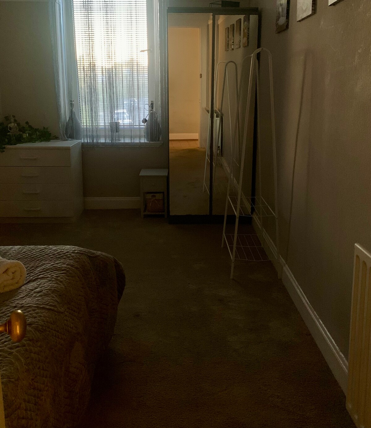 We live on the edge of the beautiful conservation village of Colinton. Although it is still known as a village, it is a suburb of Edinburgh and is a 30-minute journey by bus to the city centre. The room is very cosy and comfortable with a view to the back garden. There is a modern shower room next door. This is shared with 2 other people. The room has a double bed, a desk and chair, a built-in cupboard with lots of hanging space and a chest of drawers.