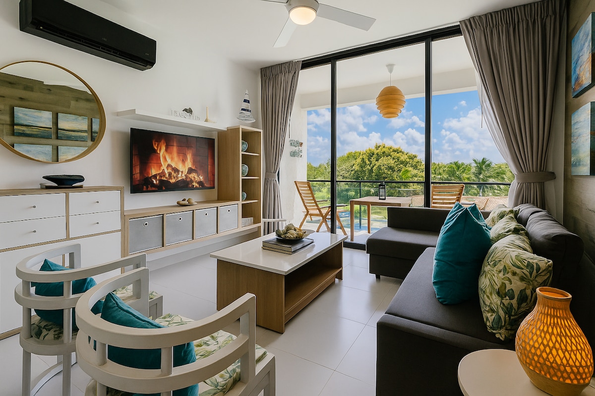 Vítej ve svém vysněném útočišti! Tento nádherný apartmán s jednou ložnicí na 3. patře nabízí úchvatný 180stupňový výhled na tyrkysové vody Atlantského oceánu. Tento moderní a stylový prostor se nachází v srdci Punta Cana a je ideální pro páry, které hledají romantický pobyt, nebo pracovníky, kteří potřebují klidné a inspirativní prostředí. Užij si vysokorychlostní internet, samoobslužný check-in a luxusní vybavení, které ti pobyt usnadní.