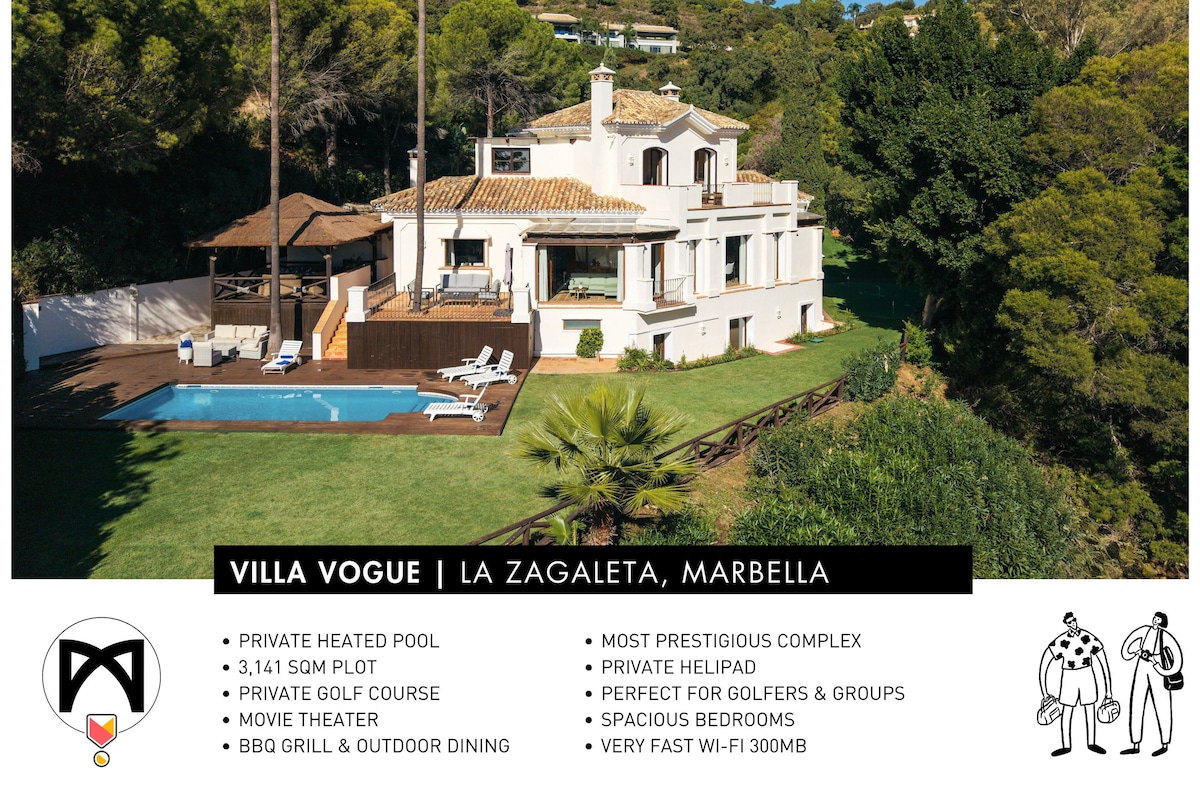 Villa Monte Elviria se nachází 8 minut od nejlepších pláží v Marbelle, na kopci s majestátním výhledem na moře, Gibraltar a hory Sierra de las Nieves, které jsou světovým dědictvím UNESCO. Villa nabízí: – Velký nekonečný bazén VYHŘÍVANÝ PO CELÝ ROK – zahradu zahrnující visuté zahrady, španělské patio, terasy a trávník – 5 velkých ložnic včetně 4 koupelen s nejkvalitnějšími manželskými postelemi (k dispozici také ve dvojitém uspořádání) – Plně vybavené domácí kino a kulečník – klimatizace v celém objektu