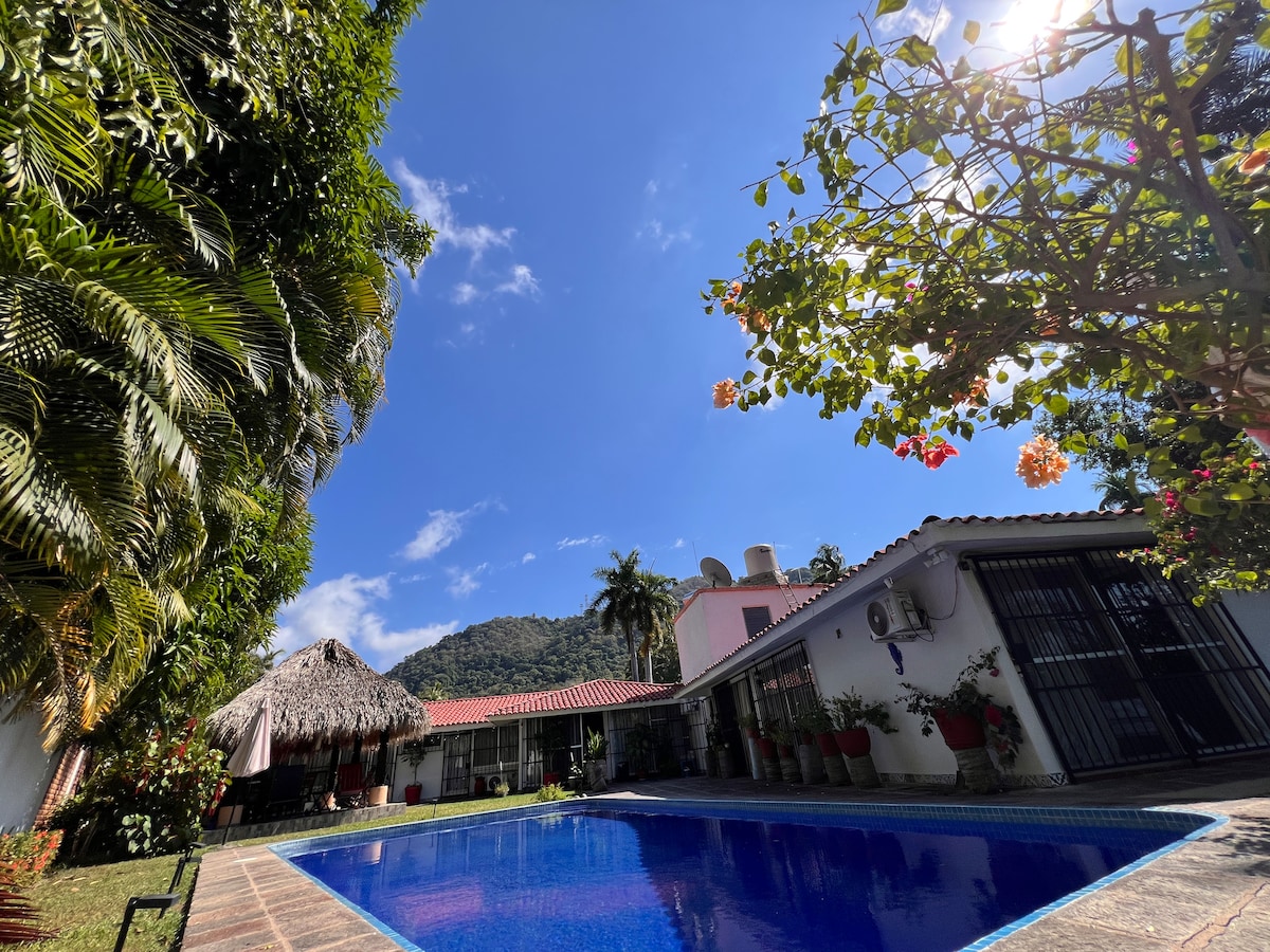 „El Mango“ je ohromující casita s naprostým soukromím a velkolepým výhledem na záliv Zihuatanejo a Pacifik. Nachází se vysoko nad Playa La Ropa a Las Gatas, odkud je to jen kousek chůze. „El Mango“ je zasazeno do tohoto idylického prostředí a je obklopeno bujnými zahradami a tropickými ovocnými stromy. Ano, to je mangovníkový strom převislý přes balkon. Jedná se o dvoupatrový dům. Posaďte se na balkon při západu slunce a popíjejte svůj oblíbený koktejl nebo se ponořte do bazénu a užijte si panoramatický výhled.