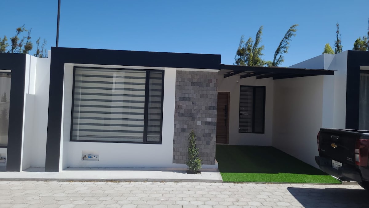 🏠 Kompletní pohodlí v Atuntaqui (poblíž Panamericana) Odpočiň si v klidném a bezpečném útočišti 1,5 km od centra Atuntaqui. Klíčová lokalita: Pouhé 3 bloky od Panamerické dálnice; snadný přístup do Ibarry/Otavala a bezplatné parkování. Nejlepší vybavení: Plně vybavená kuchyň (trouba, kávovar, mixér). Prádlo (pračka, žehlička). Práce a volný čas: rychlé Wi-Fi, TV, pracovní prostor. Zabezpečení: Venkovní kamery. Flexibilita: Ubytování je vhodné pro domácí mazlíčky.