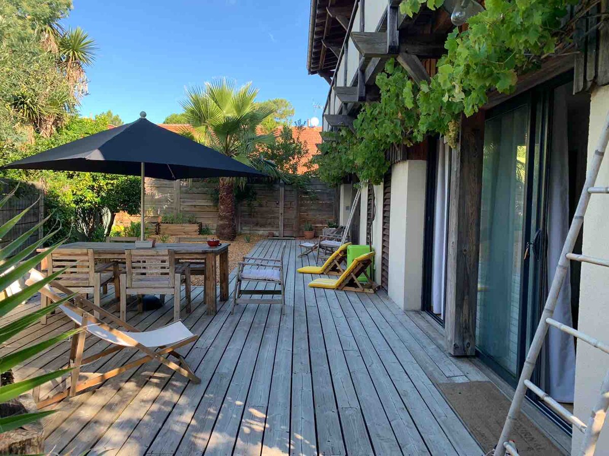 Moderní pokoj o rozloze 25 m² v přízemí dřevěného domu v centru Cap Ferret. Terasa s roštovým podlahovým krytem 400 m od oceánských pláží a Bassin, pár kroků od majáku a oblasti s chovem ústřic v Cap Ferret, v blízkosti všech obchodů, kam se dá dojít pěšky Přístup k Wi-Fi