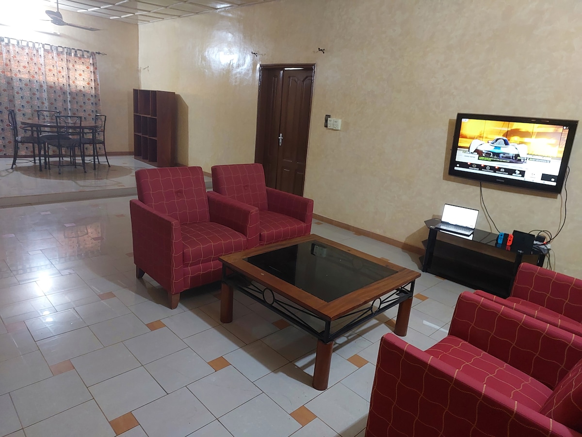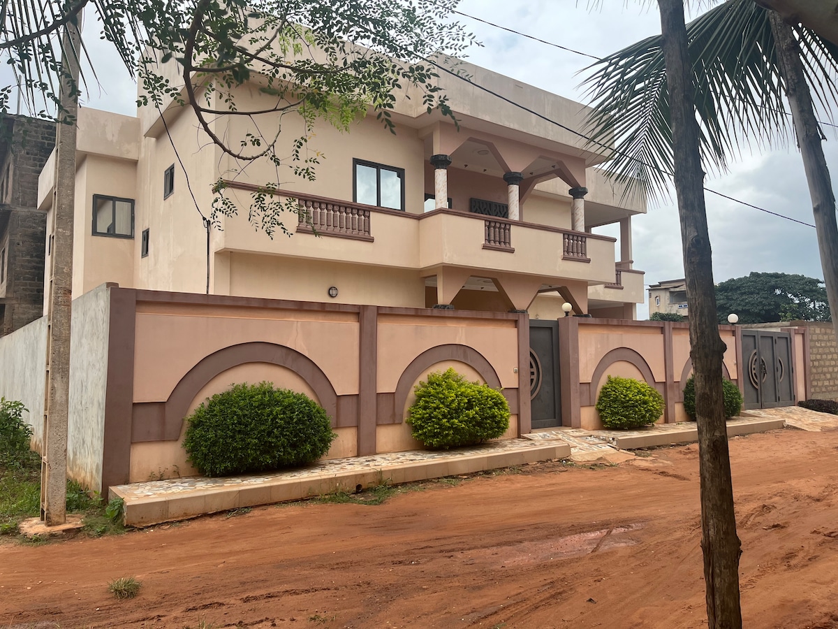 Byt ve vile R+1 s velkým kachlovým prostorem,garáží, koupelnou ,kuchyní s výhledem na město, bezpečnostním zařízením, živou asistencí,prostředky pro cestování k dispozici. Klidné, příjemné místo pro vysněný pobyt 90 km od Cotonou, ekonomického hlavního města Beninu a 5 km od historického hlavního města Beninu Abomey.