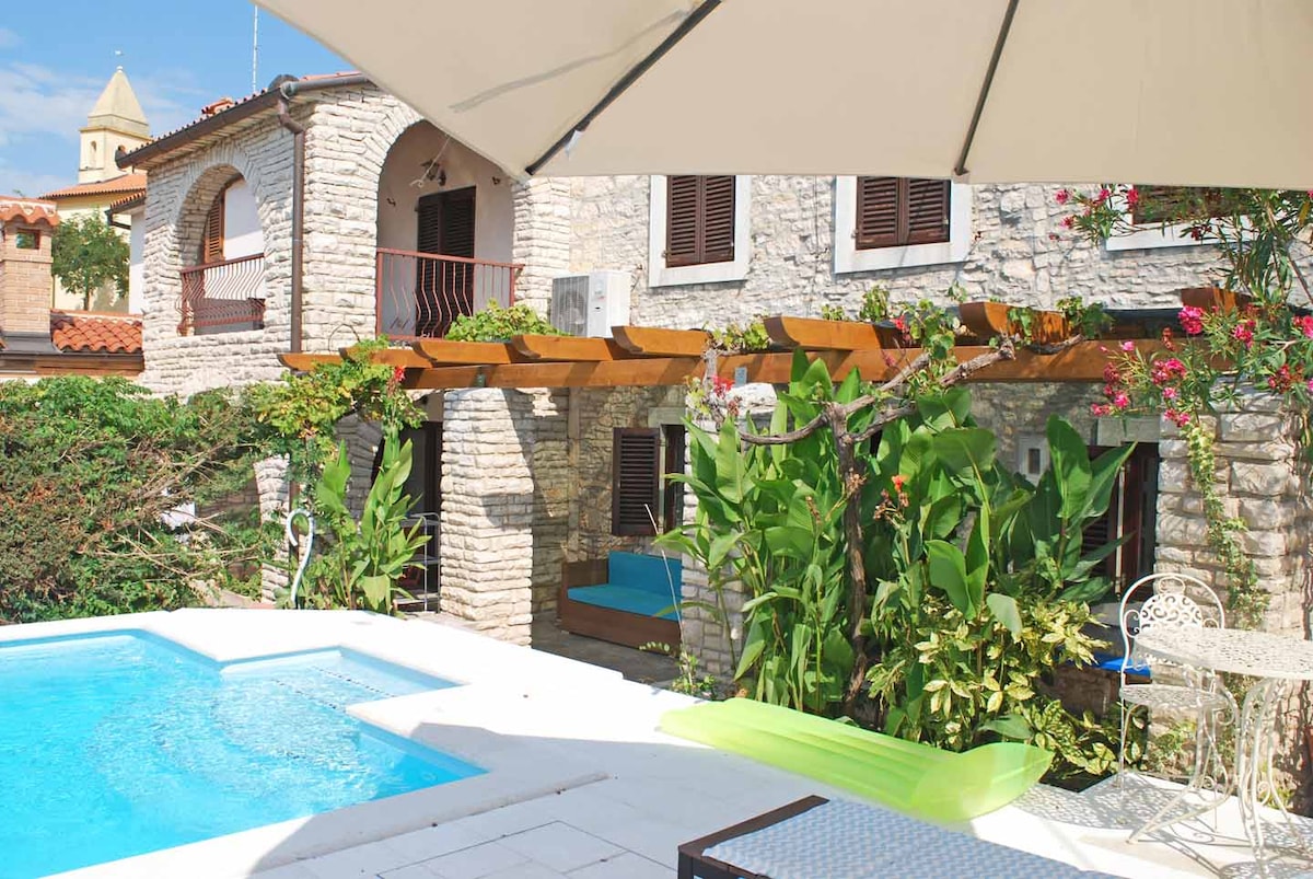 Vila se nachází v srdci půvabné přímořské vesnice Liznjan a může ubytovat až osm osob. Tradiční kamenný dům má malou, ale nádhernou upravenou zahradu s bazénem (6m x 4m) a rozsáhlými krytými a stinnými terasami. Tento prostorný rekreační dům s klimatizací a kvalitním nábytkem nabízí nejvyšší úroveň pohodlí.