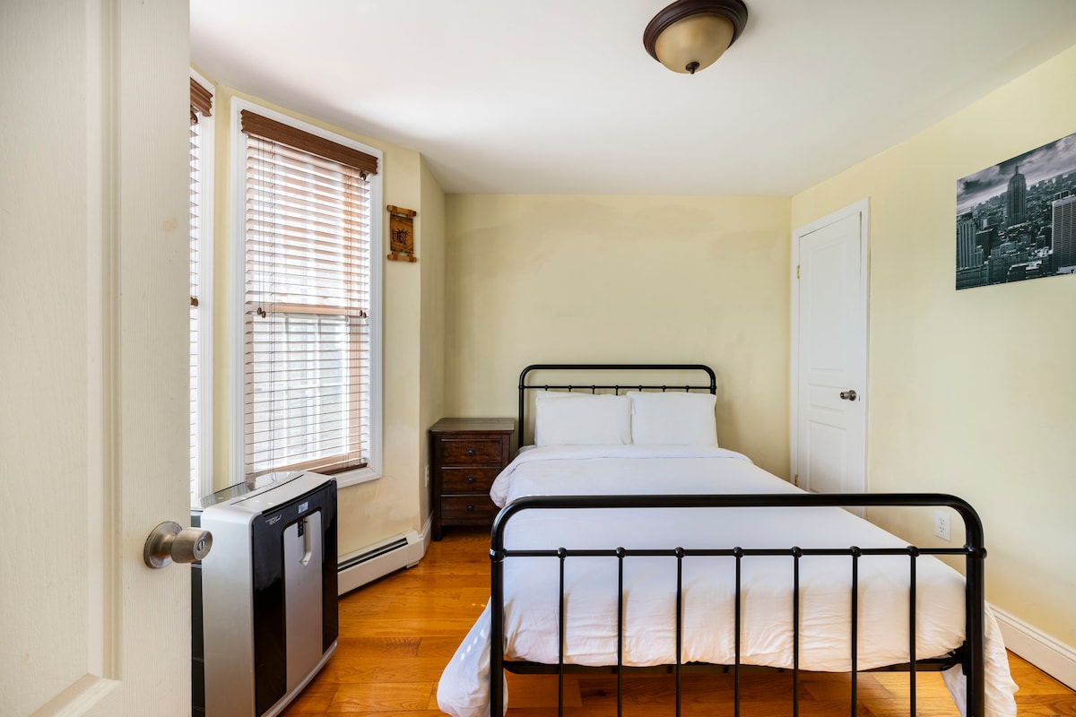 Soukromý, velký byt ve viktoriánském domě v historické části Lincoln Park v Jersey City. 1 míle od vlaku JSQ PATH do NYC/Hobokenu. Autobus na rohu do NYC! Dřevěné podlahy, 12 stop vysoké stropy, nová kuchyně, 1,5 koupelny, 2 ložnice, pohovka v ložnici a obývacím pokoji (bez rozkládací pohovky), TV, WiFi, prádelna. Parkování MŮŽE být k dispozici za poplatek na společné příjezdové cestě a musí být vyžádáno při rezervaci.