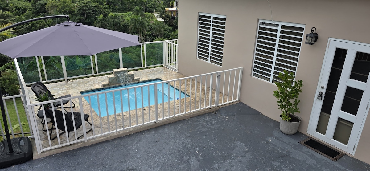 Horský vánek a výhledy jsou nekonečné v tomto nově zrekonstruovaném domě na vrcholu kopce v Barrio Cruces v Rincónu. Casa Cruces nabízí všechny výhody Rincónu: klidný život v horách jen 10 minut od pláží a surfování. Díky záložní energii a vodě můžete trávit dovolenou a pobývat v nepřerušované ostrovní kultuře. Balkony a velká okna vám přinášejí výhled na první pohled. Uzavřený bazén se slanou vodou pro vodní zábavu. Hlavní ložnice má manželskou postel, pokoje pro hosty mají menší manželské postele. WiFi: 600 mbps.