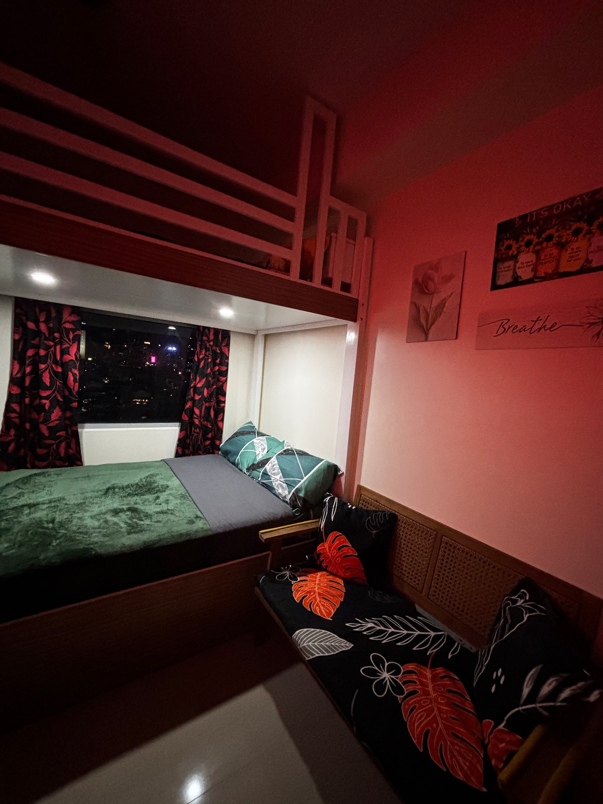 Lokalita: Junction, Cainta, Rizal Tvůj domov daleko od domova 🏠 Nabízíme ideální místo pro útulnou a klidnou dovolenou. Maximální obsazenost je 4 osoby, včetně dospělých a dětí. Žádné návštěvy. Rodina/přátelé, kteří chtějí přijít na pár hodin na návštěvu, NEJSOU povoleni. Domácí mazlíčci jsou u nás 🐶🐱 vítáni. Z ohleduplnosti k ostatním hostům však nesmějí plavat v bazénu. Po svých chlupatých mazlíčcích prosím uklízej. Naše sousedství zavádí „Přísné zásady proti hluku“