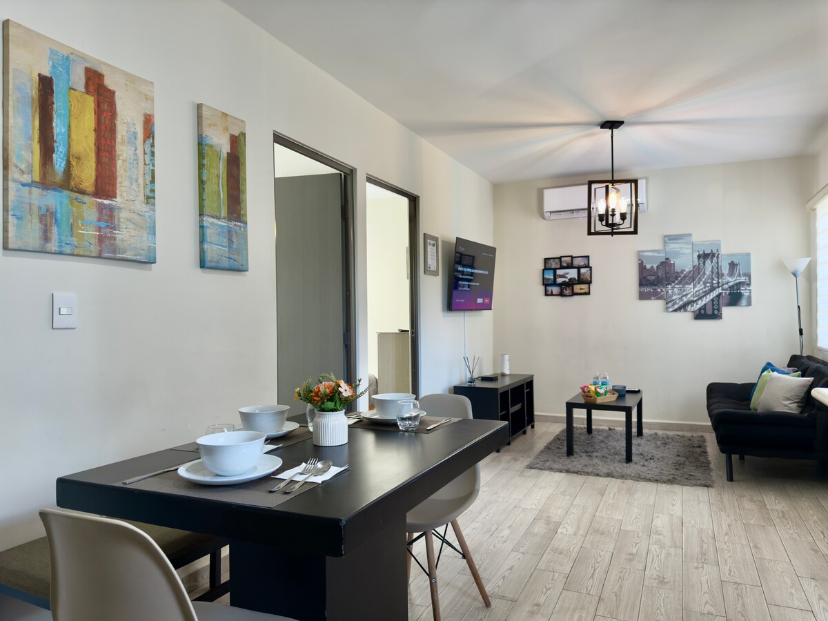 Užijte si tento elegantní byt v centru Culiacánu. Má vybavenou kuchyň, ložnici s matrací z paměťové pěny a koupelnu. V obývacím pokoji najdete rozkládací pohovku, plně funkční jídelnu a zábavu s Wi-Fi, obrazovkou, domácím kinem a Alexou. Má klimatizaci, okna s panoramatickým výhledem na krásné západy slunce, soukromé parkoviště a prádelnu. Ideální pro pohodlný a praktický pobyt v bezkonkurenční lokalitě.