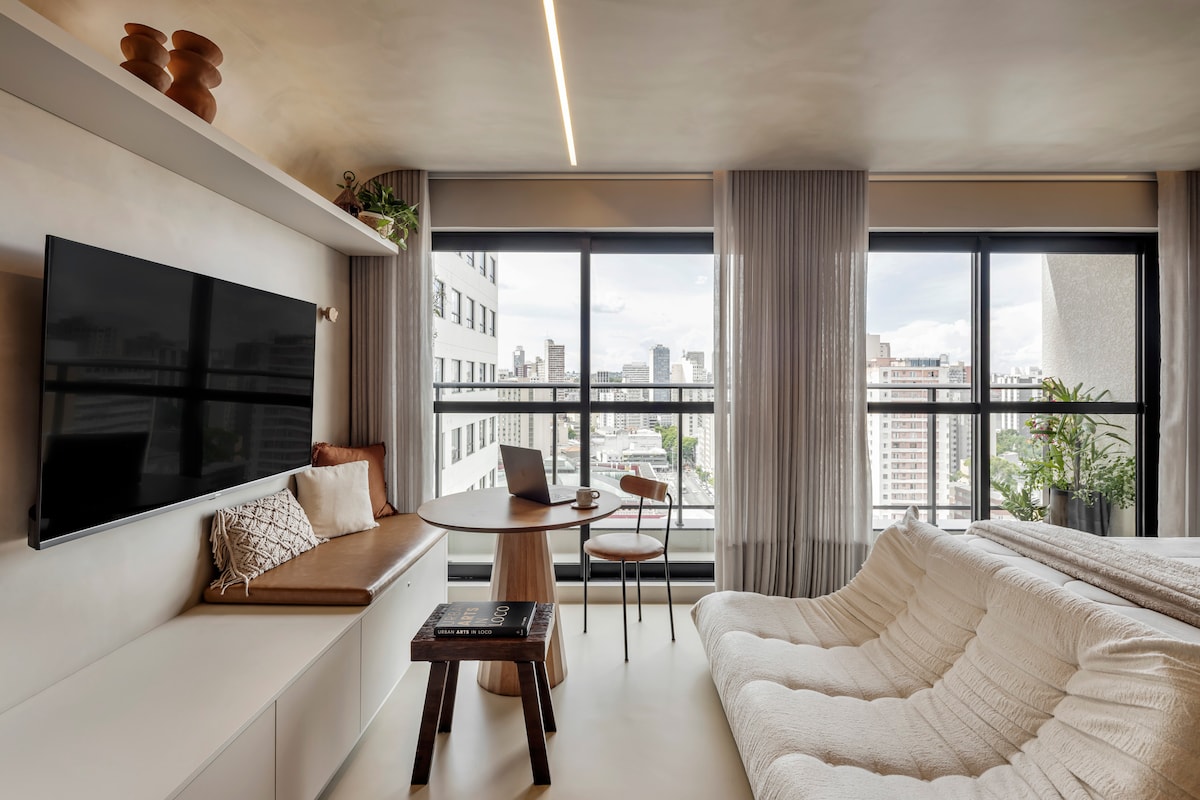 20 m² studio, plně vybavené, útulné a s nádechem kouzla Curitiby. Nachází se v 10. patře, kde je plno ranního slunce a není nic, co by bránilo výhledu. V budově je bezplatné parkování – což je v této oblasti vzácná výhoda. Jen 400 metrů od nákupního centra Estação, s tržnicí, lékárnou a McDonald's přímo před domem. Výsadní centrální poloha, v blízkosti hlavních městských atrakcí, se snadným přístupem k veřejné dopravě a pouhých pár minut od trendy čtvrti Batel.