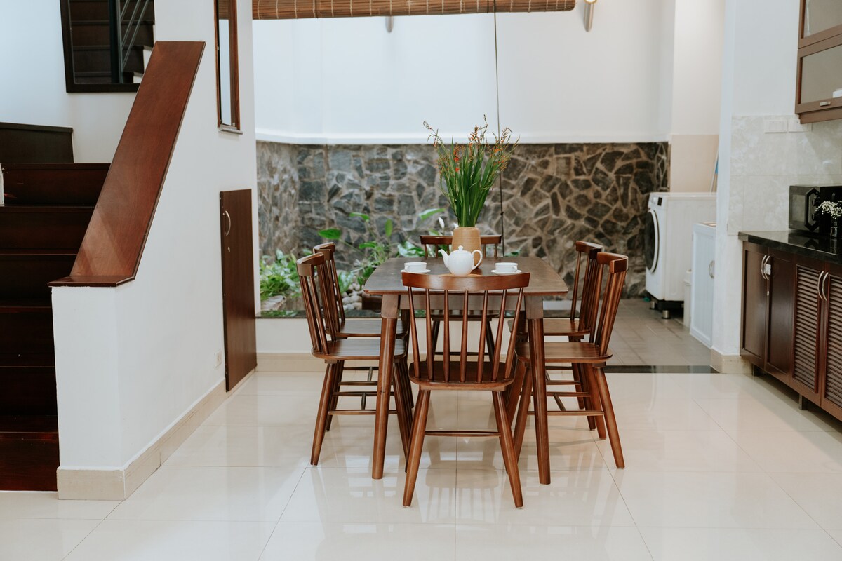 Tea&Pea will provide you a unique experience in the city–peaceful and cozy, yet still close to the vibrant rhythm of the city. A highlight is a private lovely courtyard. House is ideal for a group of 3 to 6 guests with 2 brs (Already have 2 queen beds, 1 sofa bed. We can arrange more extra bed if needed), 3 bathrooms, a common room, open living room and kitchen. Perfectly located: 3 mins to Ba Chieu Tomb 5 mins to Jade Emperor Pagoda 5 mins to Tan Dinh “pink” Church 10 mins to downtown.