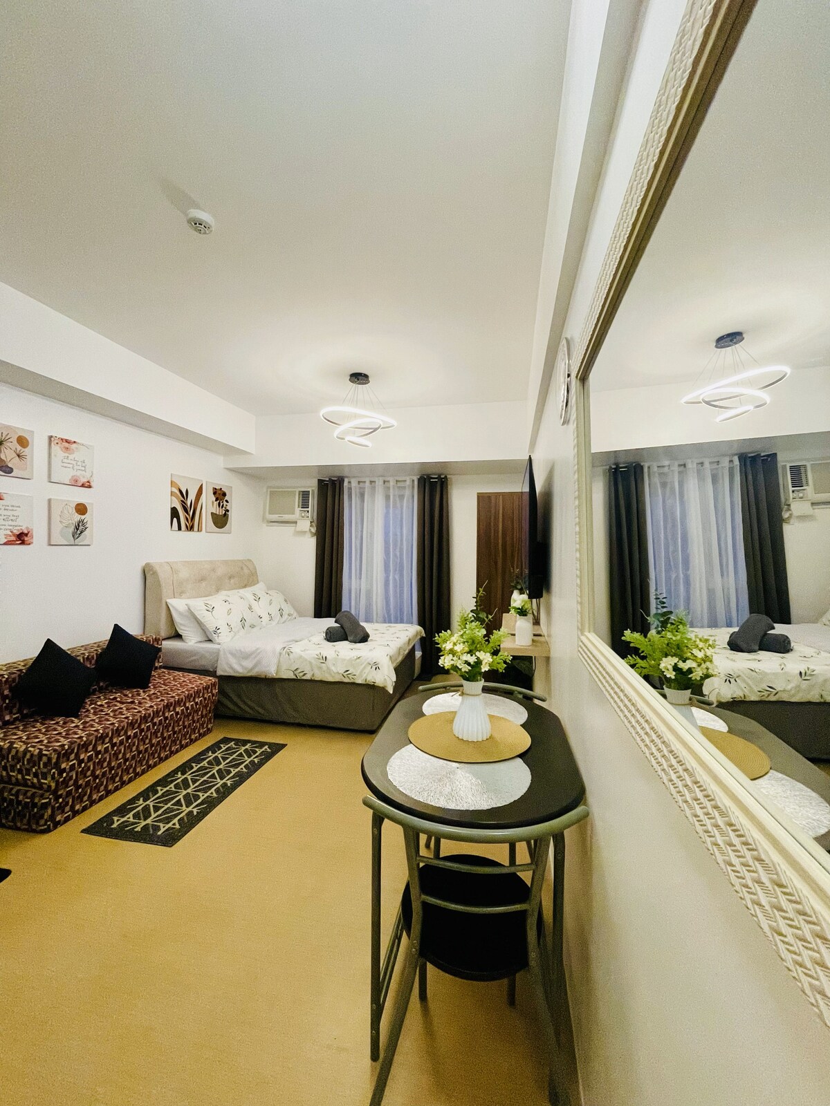 Zažij městskou eleganci v The Loop Towers v Cagayan de Oro! Náš útulný studio je ideální pro sólo cestovatele nebo páry a nabízí chytré uspořádání a moderní design. Užij si dostatek přirozeného světla, pohodlnou postel a plně vybavenou kuchyň. Nachází se v samém centru města se snadným přístupem do obchodů, restaurací a k pracovním centrům. Užij si nonstop zabezpečení pro klid na duši. Ideální pro pobyt s Wi-Fi a Netflixem.