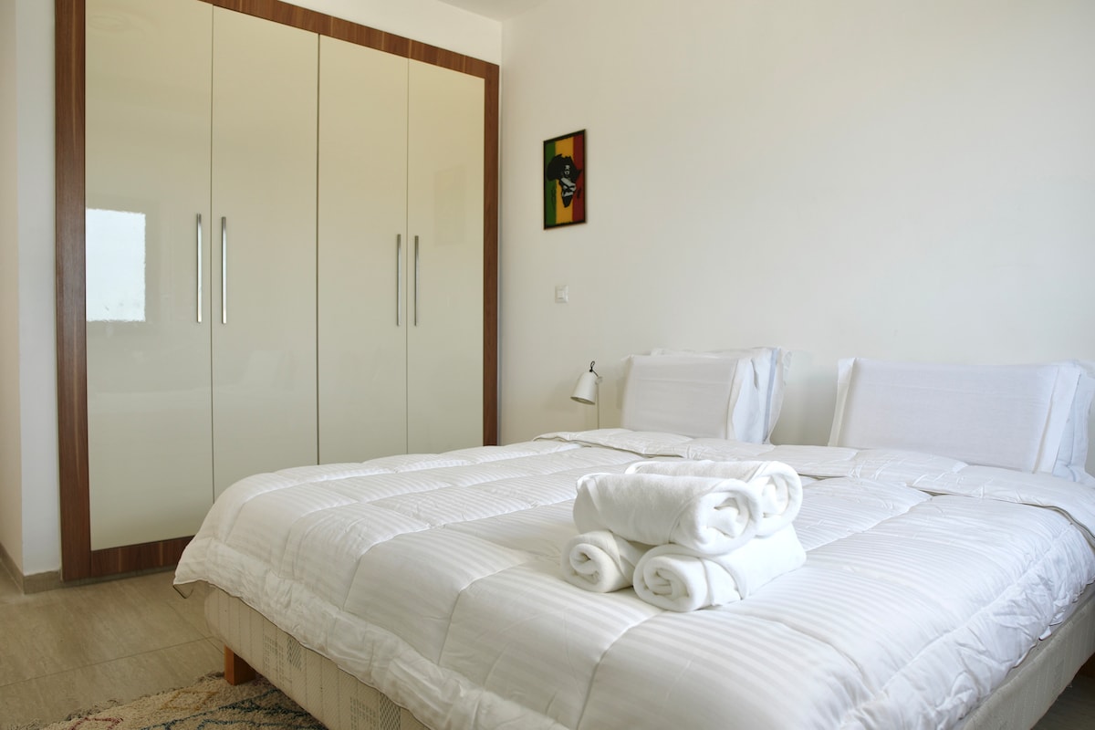 Byt s panoramatickým výhledem na oceán a Marina Bay. Velmi světlý, vzdušný, velký obývací pokoj v zabezpečené rezidenci s recepčním a nonstop ostrahou. Lokalita v blízkosti pláží Yoff Virage , Ngor a elegantní čtvrti Almadies. Skvělé pro rodiny a služební cesty. Plně vybavený, klimatizovaný apartmán s psacím stolem, Nespresso, parkování v suterénu. Pro tvůj bezpečný příjezd je k dispozici elektřina. Za zbytek odpovídáš ty. Skvělý pobyt.