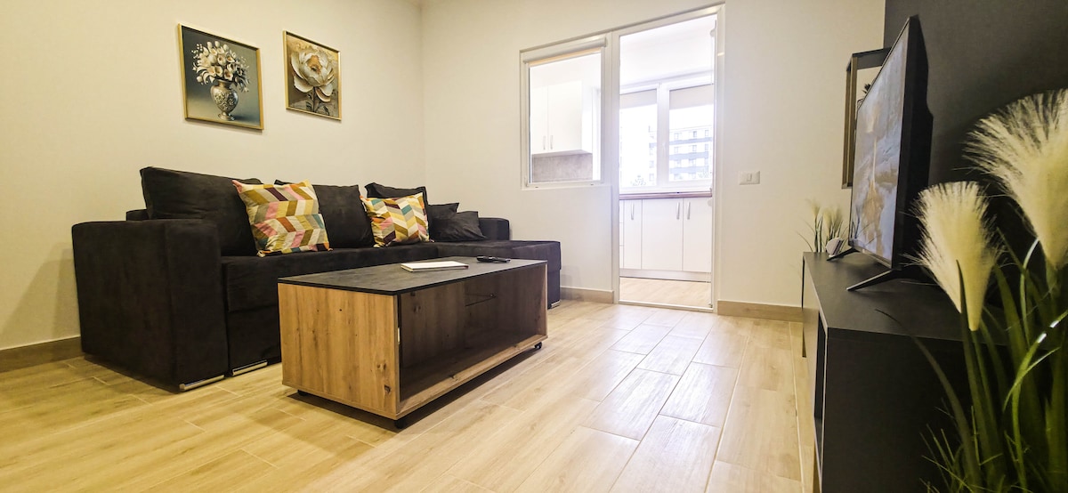 Acest apartament recent renovat îmbină designul modern cu o atmosferă caldă, astfel încât oaspeții să se simtă cu advărat ca acasă. Dispune de aer condiționat, încălzire termică, bucătărie complet utilată. Apartamentul beneficiază de o amplasare excelentă, fiind situat în apropierea unui parc și unui supermarket pentru cumpărături rapide, de asemenea se află în vecinătatea Spitalului Județean, ceea ce îl face o alegere practică.