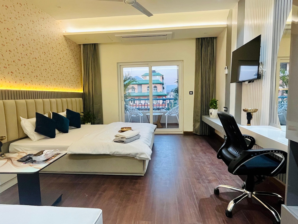 Útulný domov se dvěma ložnicemi a kuchyňkou s výhledem jako z filmu – sleduj západy slunce, duhy a Himaláje ze svého balkonu s výhledem na 9jamkové golfové hřiště. Je ideální pro páry i rodiny a nabízí vyhrazený pracovní prostor s ergonomickými židlemi, pečlivě vybraným nábytkem a uměním. Obývací pokoj je ideální pro večery u Netflixu díky zvukovému systému, vysokorychlostní Wi-Fi a plně vybavené kuchyni pro domácí pohodlí. 15 minut na Rajpur road.