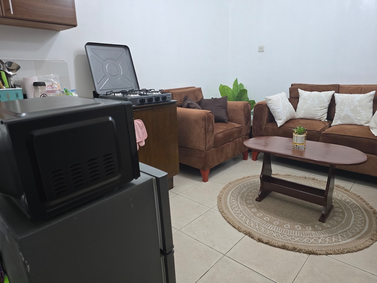 Vítej v našem útulném útočišti s jednou ložnicí v srdci pulzující oblasti Masaki! Ideální pro sólo cestovatele, páry nebo obchodní profesionály, kteří hledají pohodlný a pohodlný pobyt v Daru. V ložnici je klimatizace, manželská postel s prémiovým ložním prádlem, která zajišťuje klidný noční spánek. Útulný obývací prostor je ideální pro odpočinek po dni stráveném průzkumem, s ventilátorem, chytrou televizí a WIFI pro vaši zábavu Připravte si lahodná jídla v plně vybavené kuchyni se základním spotřebičem